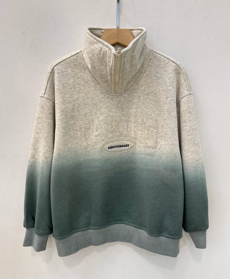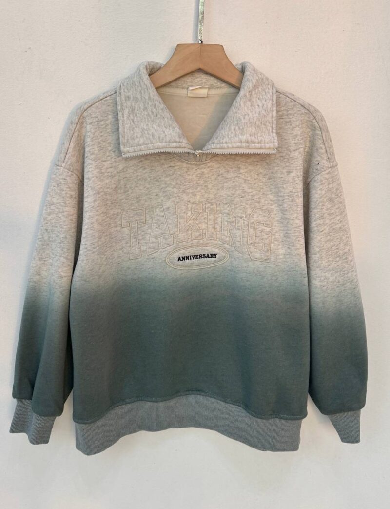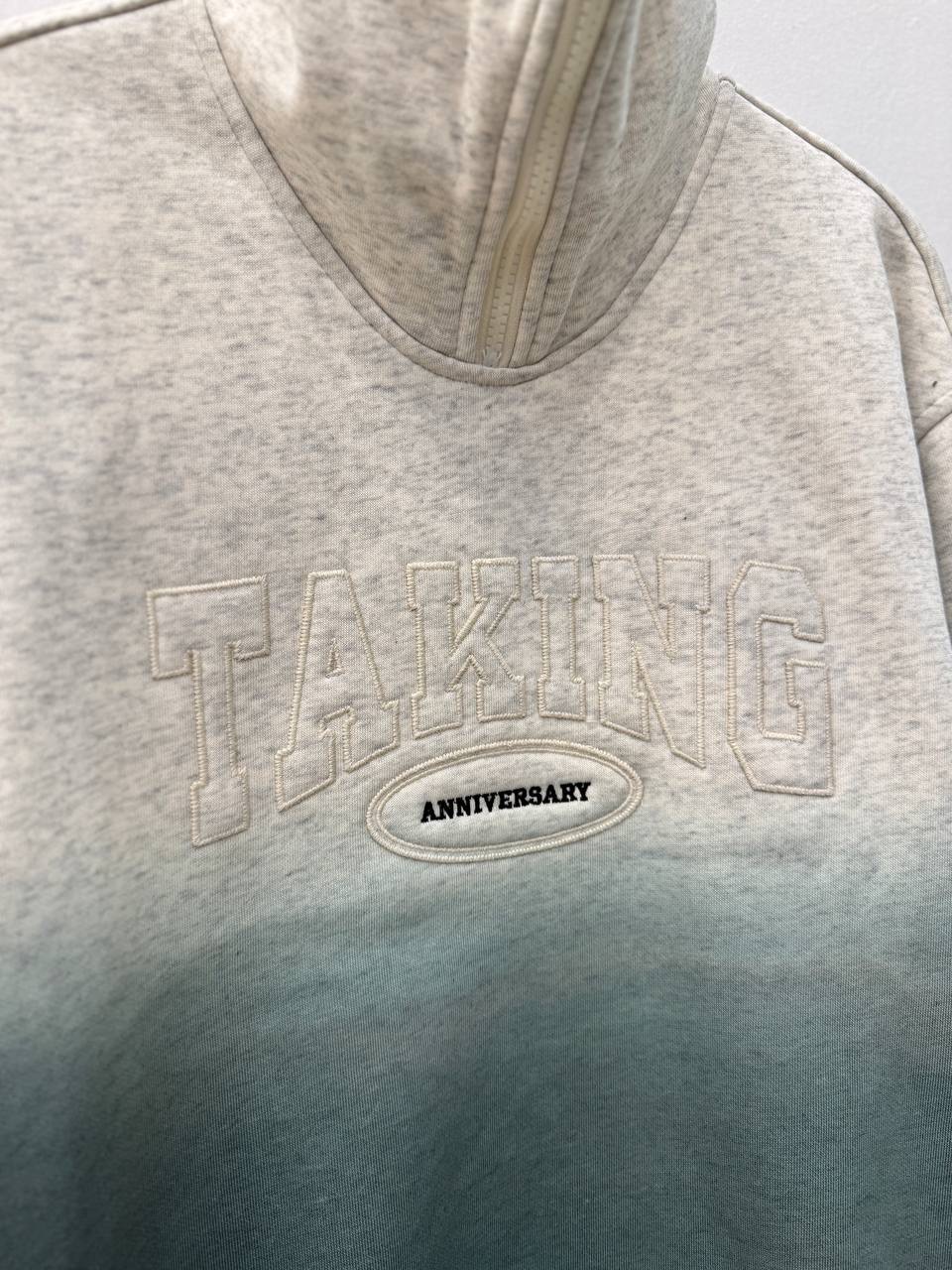 یقه‌زیپی این سویشرت علاوه بر اینکه استایل اسپرت و خاصی داره، موقع پوشیدن هم خیلی راحت‌تره. طرح برجسته روی سینه با نوشته‌ی TAKING و کلمه‌ی ANNIVERSARY ظاهر لباس رو خاص و بچگانه کرده.